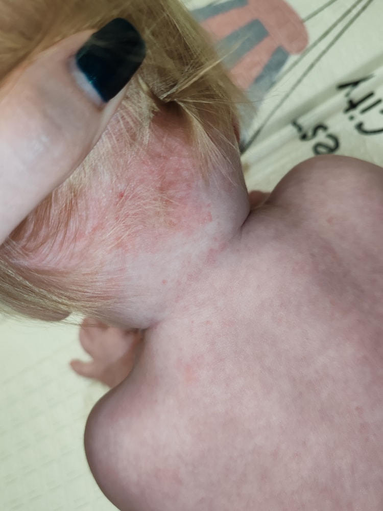 БолезниВсем здравствуйте, девушки подскажите пожалуйста,может кто-то сталкивался. У ребёнка периодически появляется и пропадает сыпь в области затылка и на обоих плечиках,иногда бывает сыпь, иногда бывает голова покрывается красными пятнами. Иногда переходит на спинку.Сопровождается это всё зудом