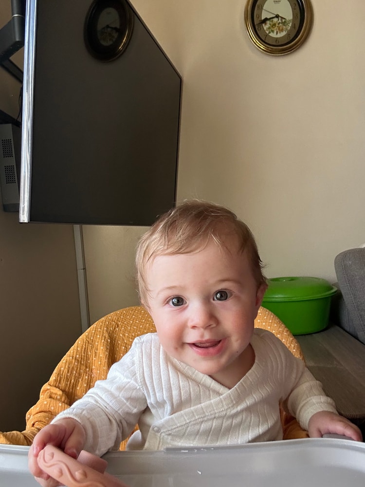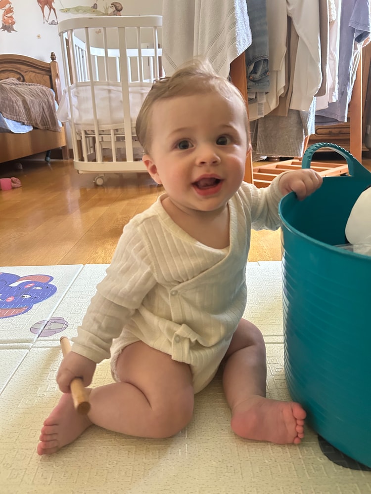 Очень много звуков болтает, любит проверять свой голос на диапазон, кричать как чайка))) очень внимательно наблюдает за всеми взрослыми, особенно за мамой🥰