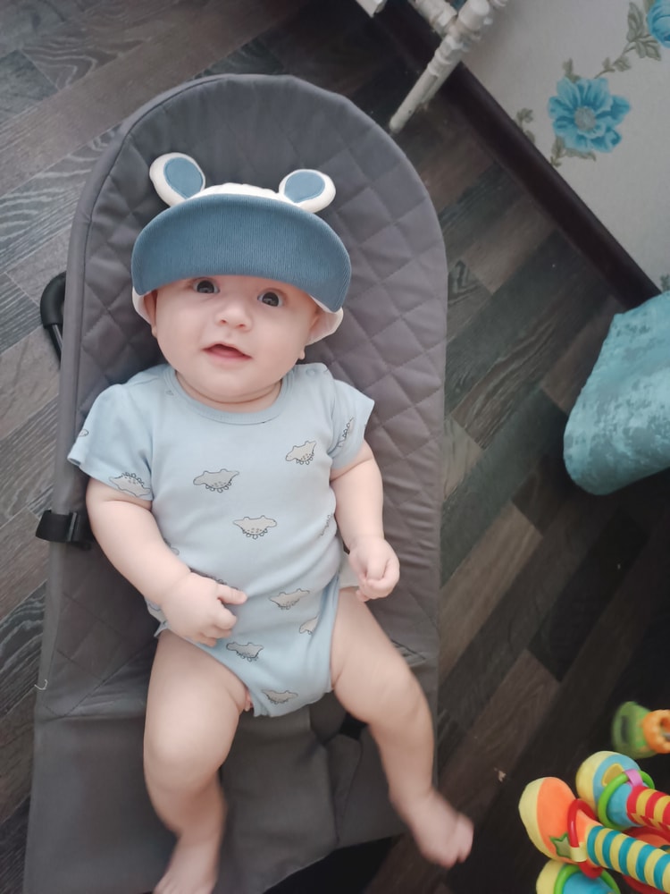 Сейчас мы активно переворачиваемся с пузика на спину и пытаемся ползать, но так как не получается псхиует 😂 кушаем уже по 180, очень любит жевать свои руки, пеленки и все возможные игрушки)) на половину переворачивается со спины на живот.