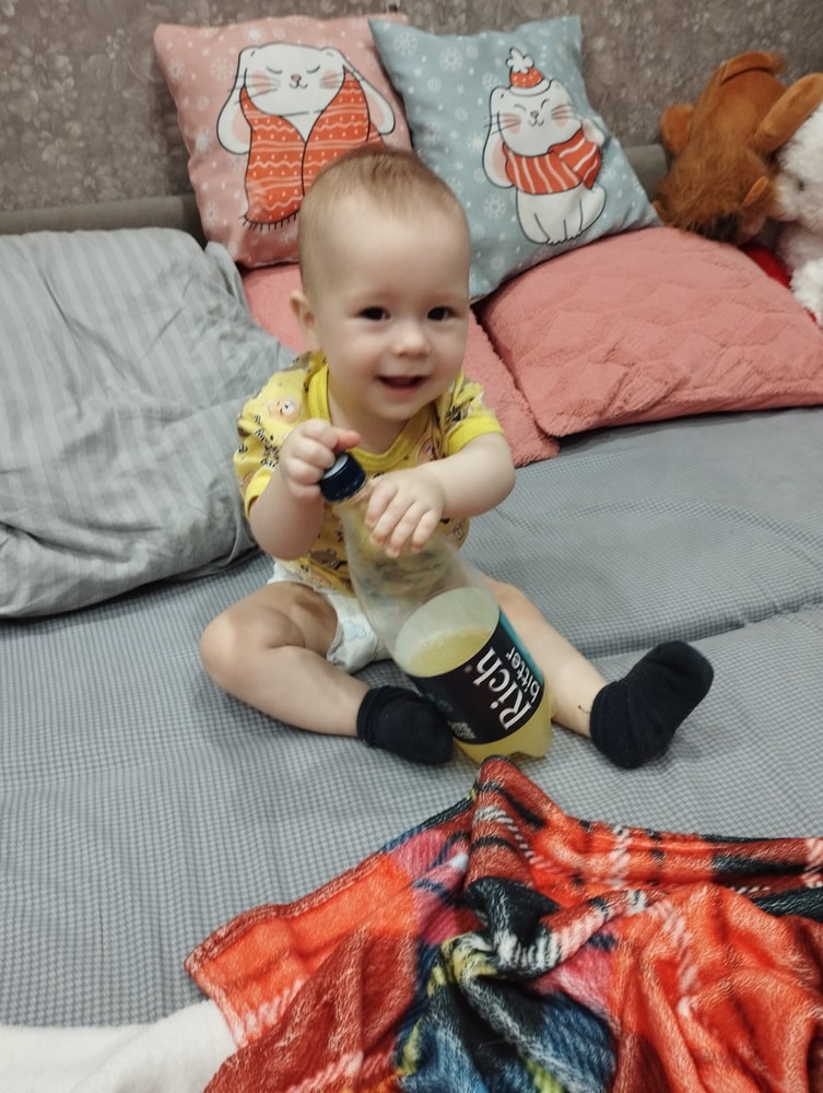 Балакает по своему много и охотно. Любит когда его слушают и отвечают на его же языке)). Заметила что стал более уситчив. Может один по долгу заниматься "своими делами" с очень важным видом. Интересны мелкие детали, замочки, что то открыть, куда-то положить. Заказала на озоне бизикуб, надеюсь ему будет интересно.