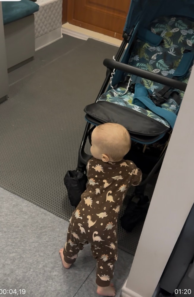 Казалось бы только вчера она делала такие сложные для нее первые попытки ползти, но уже через месяц все так быстро начало меняться. Я еще не привыкла к тому, что выходя, например, из ванной на меня уже смотрят из-за угла детской и хитро улыбаются, а тут уже приходится привыкать к тому, что этот человечек не просто выполз из комнаты, но и стоит везде! Стоит у своей коляски, стоит в кроватке, стоит у собачьей миске, стоит у мебели и даже у своих качелей, которые при этом двигаются :) теперь не могу спокойно сходить в туалет… Приходится оставлять в кроватке, где падать не так больно. Но падает она все равно часто, как бы я не старалась быть рядом. Иногда она просто летит куда-то совсе в другую сторону, а не там, где я ее страхую. Что ж, так она быстрее научится приземляться на попу и держать равновесие, а я сделала все возможное, чтобы смягчить полы и углы во всех комнатах. С тем, как быстро дочка осваивает навык стояния и начинает делать шаги, надеюсь мы скоро закончим этот период падений) и начнется период ходьбы и таскания всего до чего может дотянуться с высоты своего роста. Тут я тоже постаралась все заранее обезопасить и убрать.
