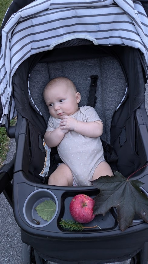 Приходится мамане гулять с коляской от дерева к дереву. Сегодня по дороге целый гербарий собрали - вот какой)