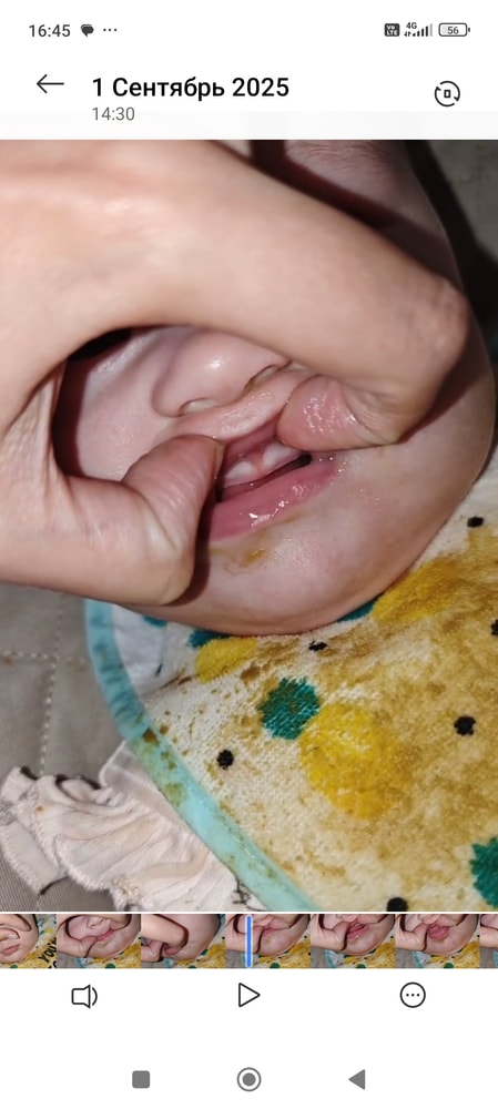 Лилиана, что-что, зубы это в десне, очевидно. Но они еще не опустились даже, высоко сидят. Посмотрите в интернете как выглядят верхние резцы, когда прорезываются, и из какого места они прорезываются. Все индивидуально, конечно, но тут прорезывания и близко нет