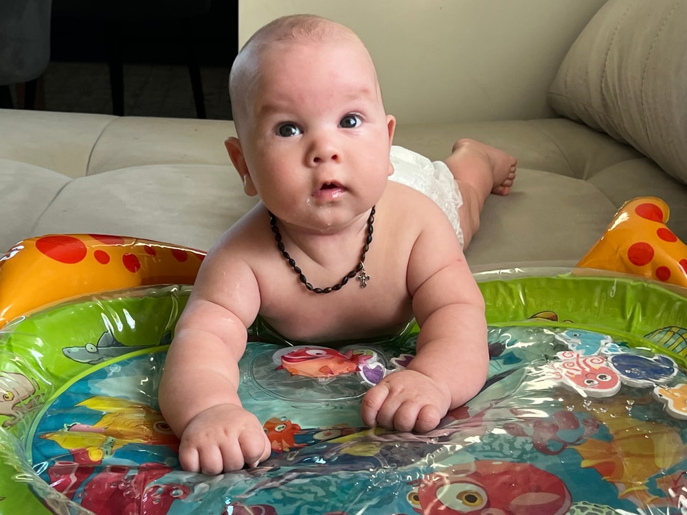 Цвет глаз уже почти карий, что папу немного печалит, он хотел, чтобы мамины голубые были у сына глаза. Но генетика папина, что поделать) зато еще и папины ямочки нарисовались. Ох, как я их ждала!!!