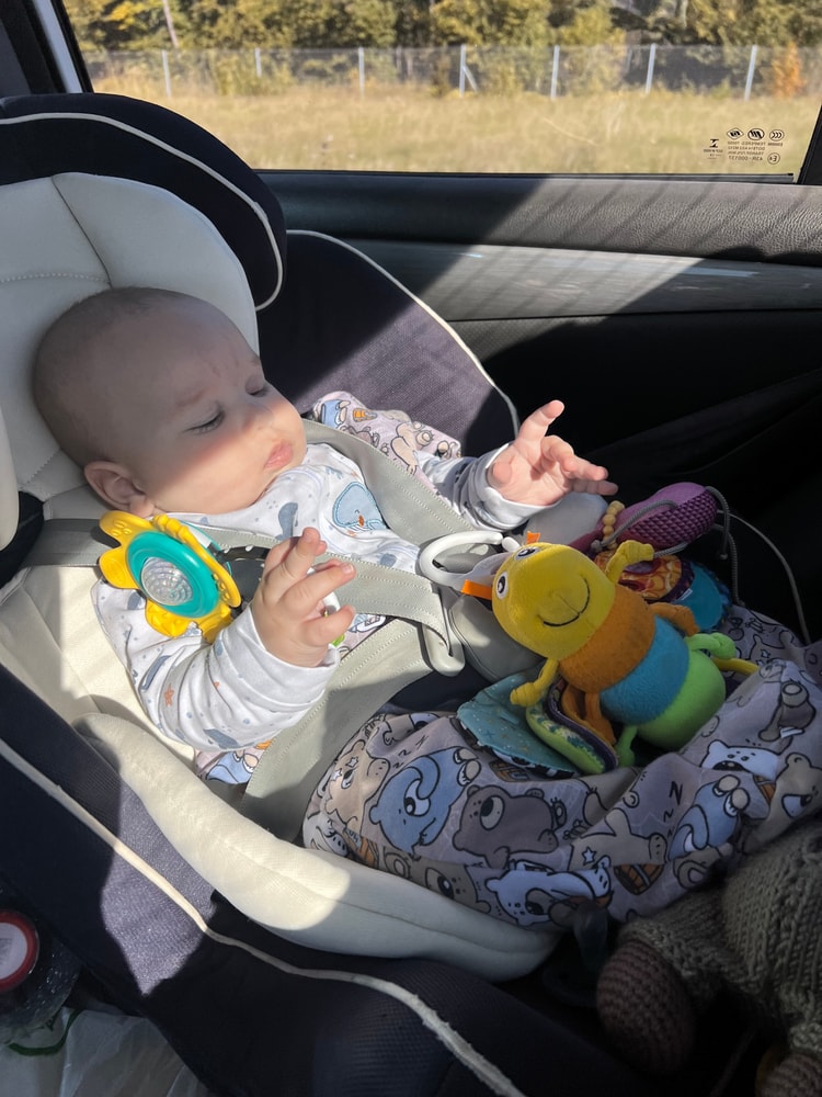 А в конце месяца Феликс совершил свое первое путешествие в Москву на машине к бабушке с дедушкой. 850 ку в одну сторону. Мама зря переживала! Все прошло просто отлично. Но в папином автокресле ему нравится явно больше, чем в маминой автолюльке. Думаю о смене перевозки в основной машине… кресло как-то посвободнее будет.