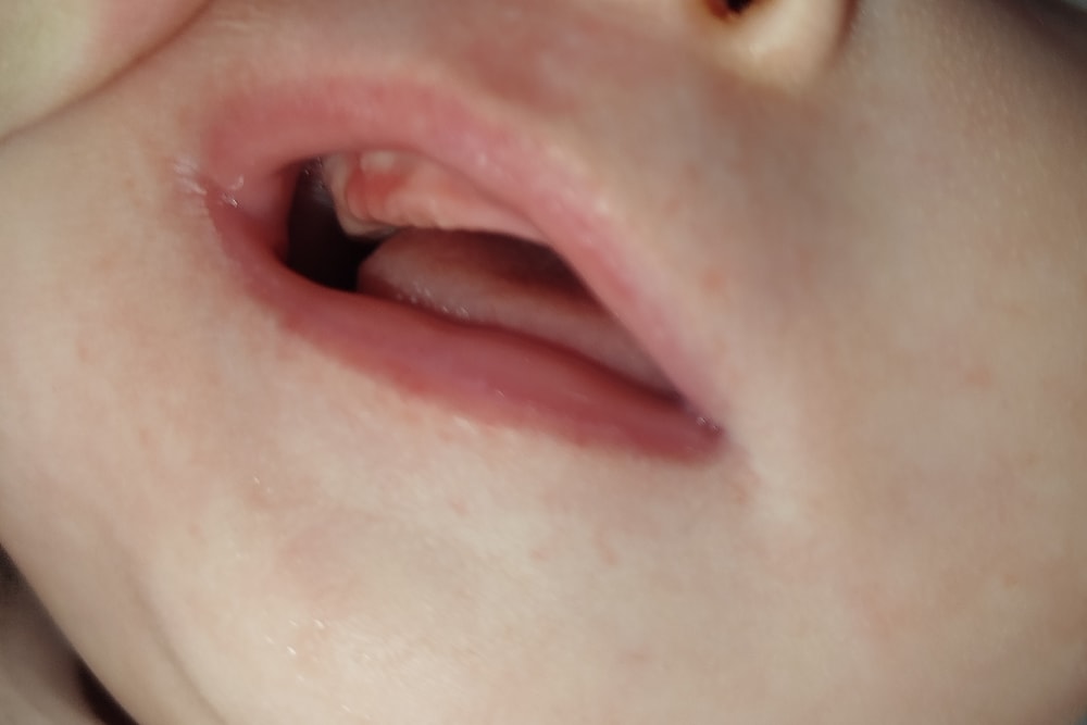 ЗубыРебенок( 2 месяца 25 дней если быть точнее) крайние пару дней, очень капризный, много орет дуриной, что для неё не свойственно обычно. Слюни рекой, вся одежда насквозь мокрая, все тянет в рот, спит по 20 минут днëм в лучшем случае. Сегодня заметила покрасневшую Десну в районе где обычно у деток клыки, и белое образование ( фото прилагаю)) . Похоже, будто там зуб намечается, но слишком высоко, и к тому же рано, поэтому даже не знаю. Что думаете?