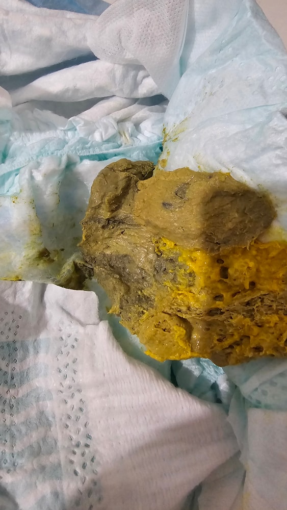 Горшечные делаПоилагается фото извините за ранее. Всем привет. Нам 4 месяца и по немногу начали прикорм в 3м 3 недели яблоко , банан . Вчера у нас было 3 маленькие не полные ложечки сладкого картофеля ( баночки) Пс. поикорм рекомендовал педиатр. Но меня как то напрягает стул малыша меняет цвет со скоростью света, был серовато-белый ( мне сказали что стул нормальный, иду к другомуврачу ),когда был бананн и яблоко. Пару дней не кормила пюрешкой стул норм . Сегодня он многоцветный какой-то . Я вот не могу понять норма ли это или стоит бояться ?