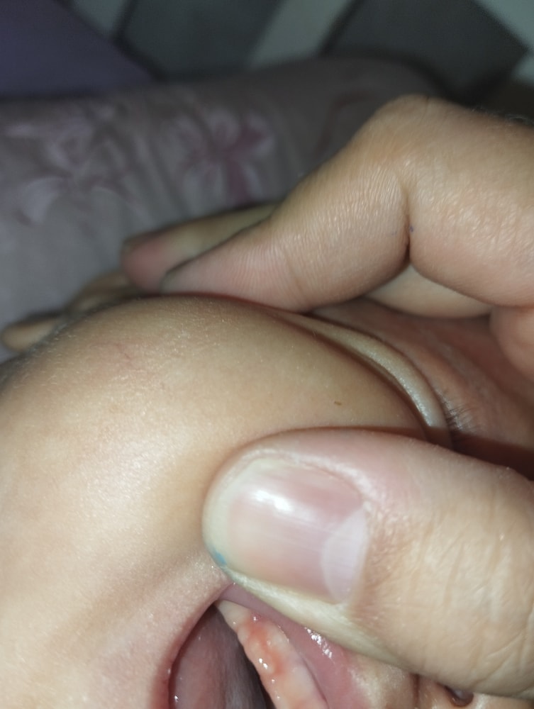 Дёсна с двух сторон, подскажите пожалуйста похоже что это на зубы? Ведь я даже незнаю как у малышей прорезаются они