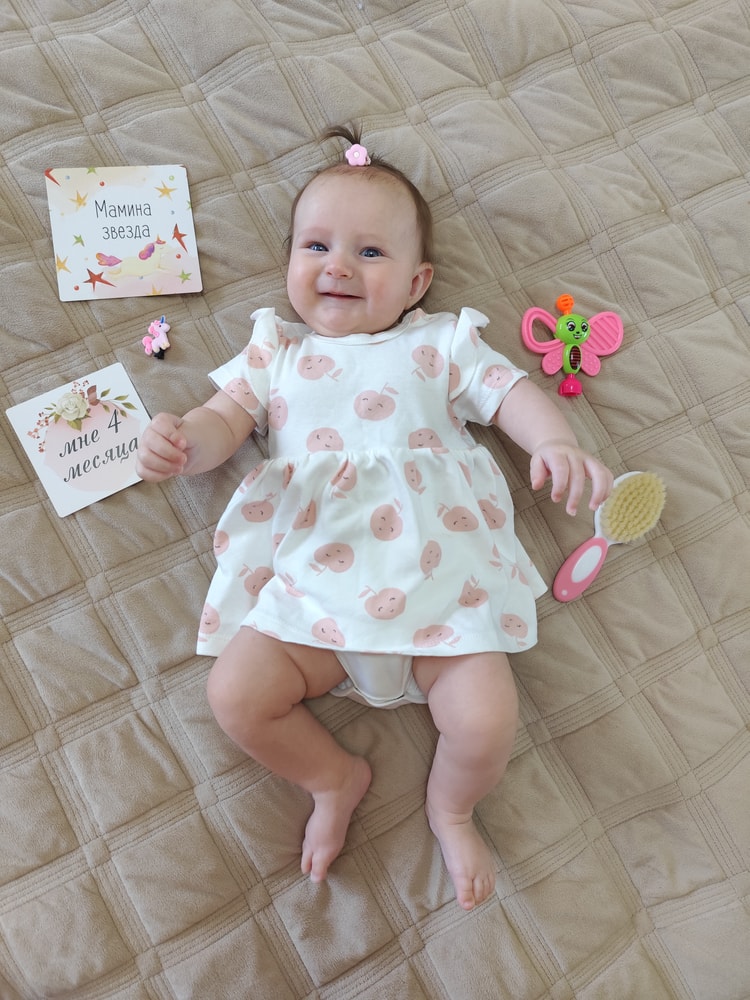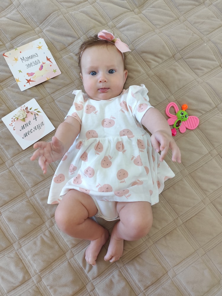 Отчёты по месяцамРастет моя звёздочка 5950 кг и 62 см набрала за месяц всего 450 грамм и +1 см. Хотела по вечерам докармливать смесью чтобы посытнее было , чтобы ночью реже грудь просила купила 2 пачки на козьем молоке и что вы думаете первые дни как то пила немного, а теперь плюется, требует ГВ. Не переворачивается ещё , ночью правда переворачивается орет потом 😄29 сентября начнется массаж пусть промассируют булку мою. Улыбается , понемногу смеётся но надо прям смешить смешить. Ножки нашла и любит пускать пузыри.