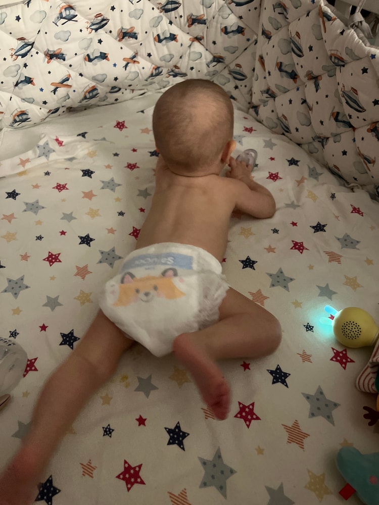 Хотя развитие навыков на 7 месяцев оценили. Стоит и раскачивается на 4х, ползает на животе и прыжками на четвериках тоже перемещается