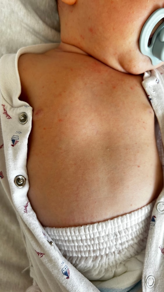 БолезниЗдравствуйте,подскажите,нам 1 месяц 8 дней,полностью на ив,перешли две недели назад,смесь нестожен комфорт плюс,у ребенка появилась сыпь на подбородке,шее и груди,когда ребенок тужится и краснеет,сыпь проявляется сильнее,5 дней давала от аллергии «демитинден»,но сыпь не прошла