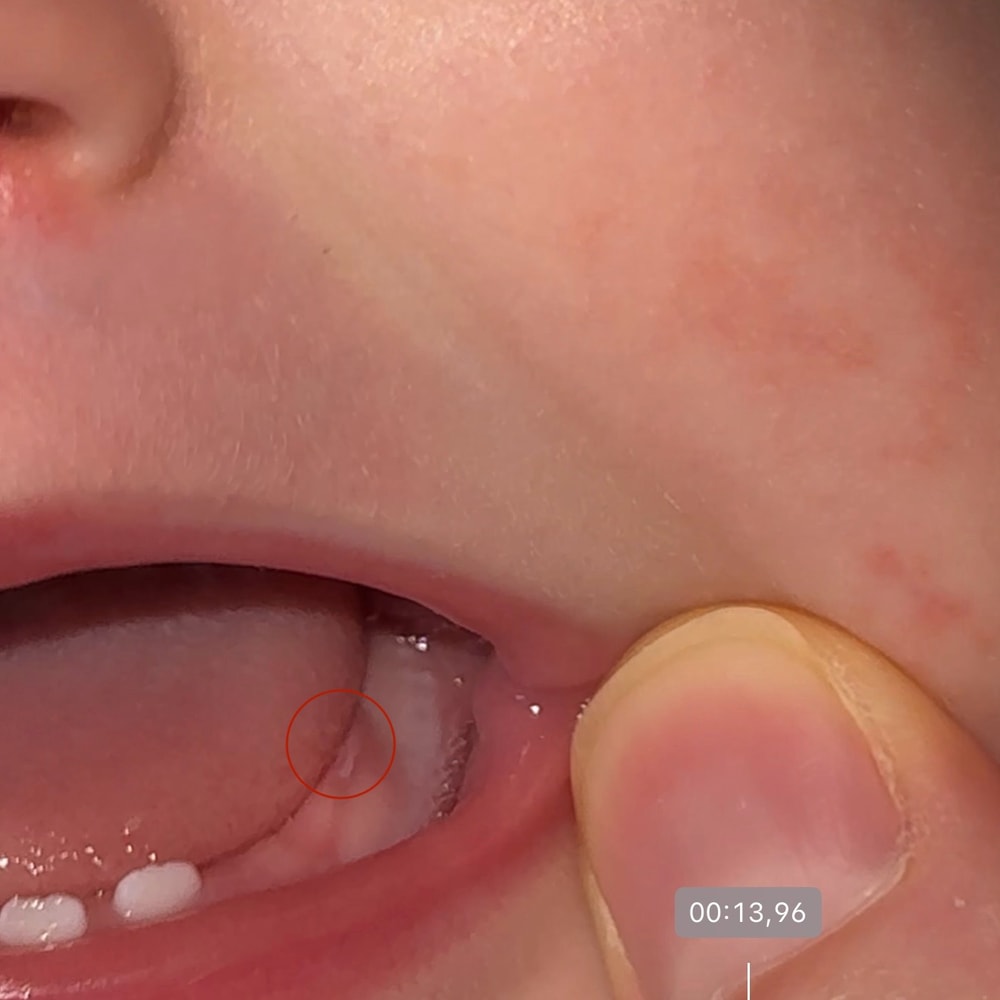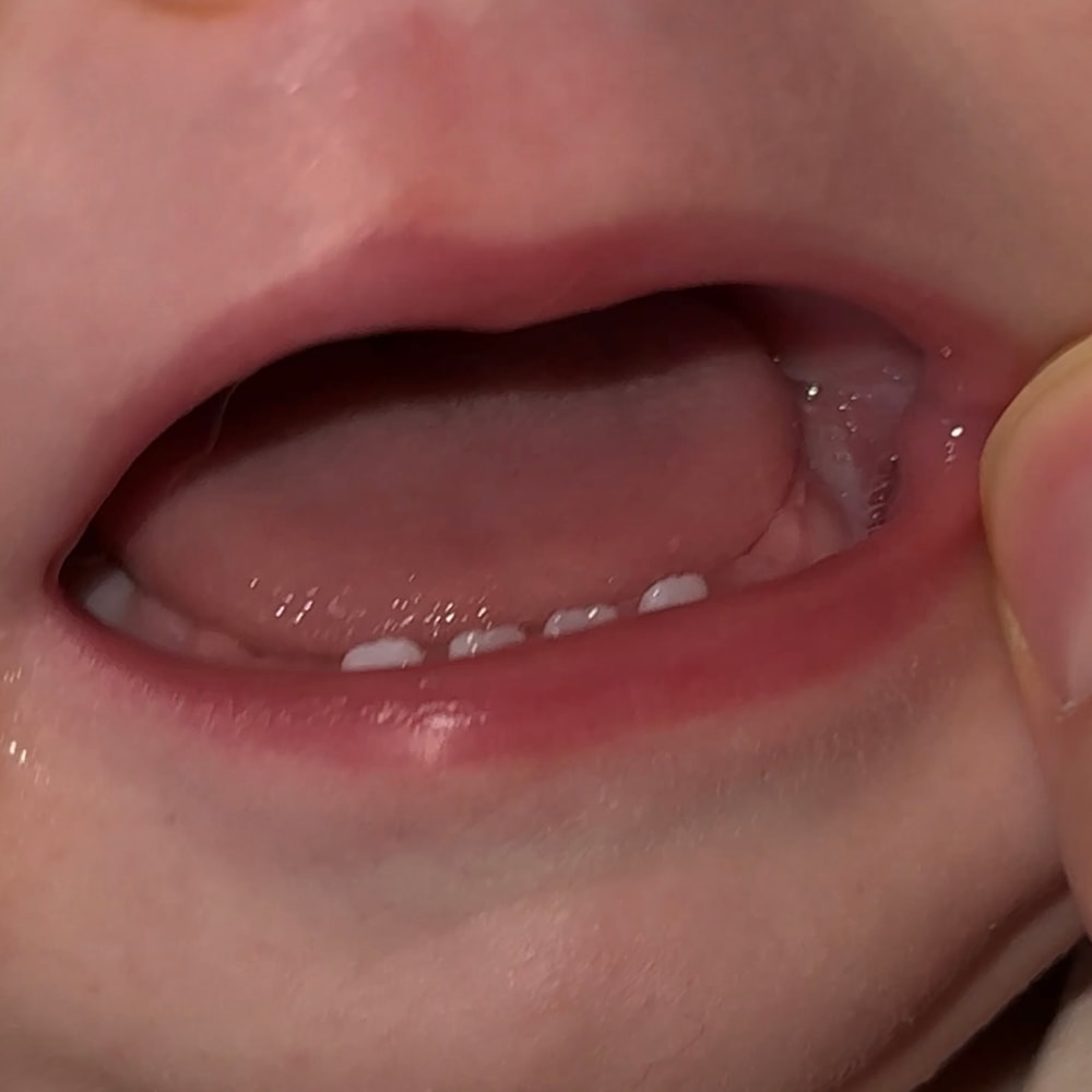 ЗубыВсем привет! Посмотрите пожалуйста похоже ли на то что режется задний зуб? Я случайно заметила белую полосочку, не понимаю зуб это или нет, также не могу понять опухшая ли десна? Моляры мы не ждём от слова совсем, не знаю что и думать, но ушко второй день чешет с этой стороны(