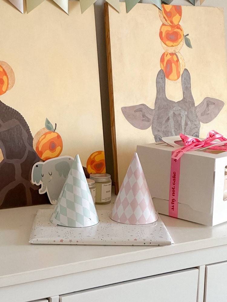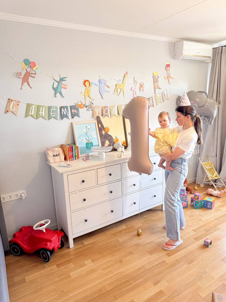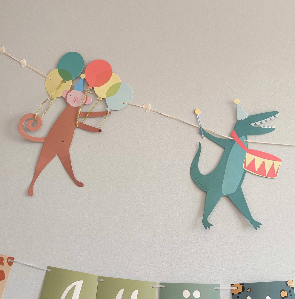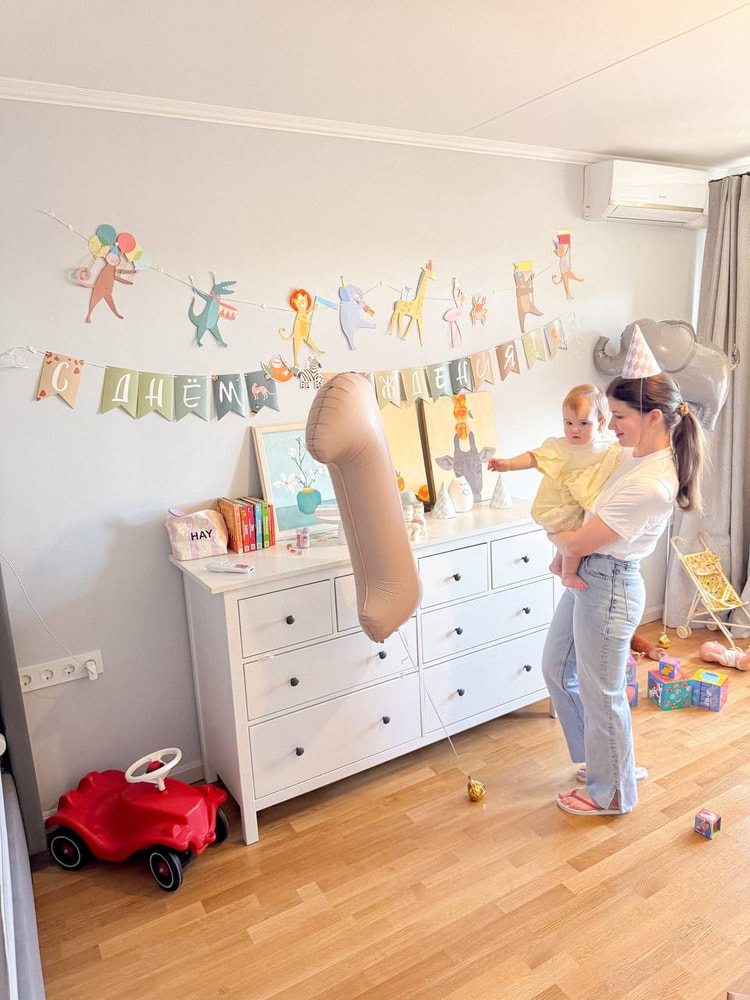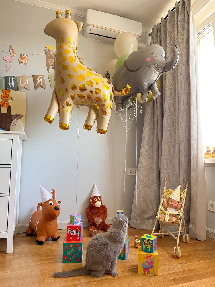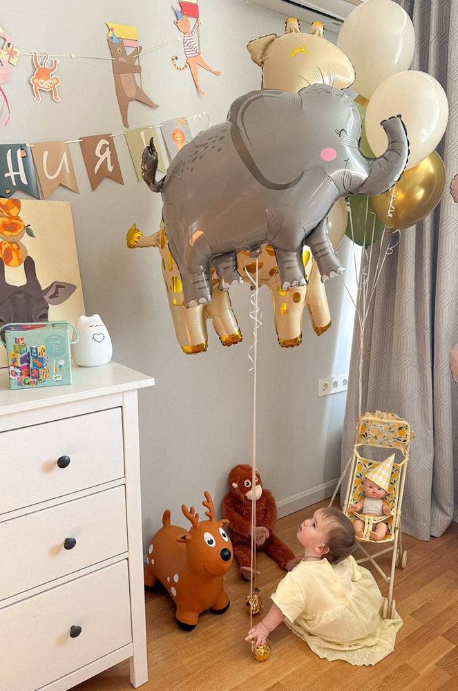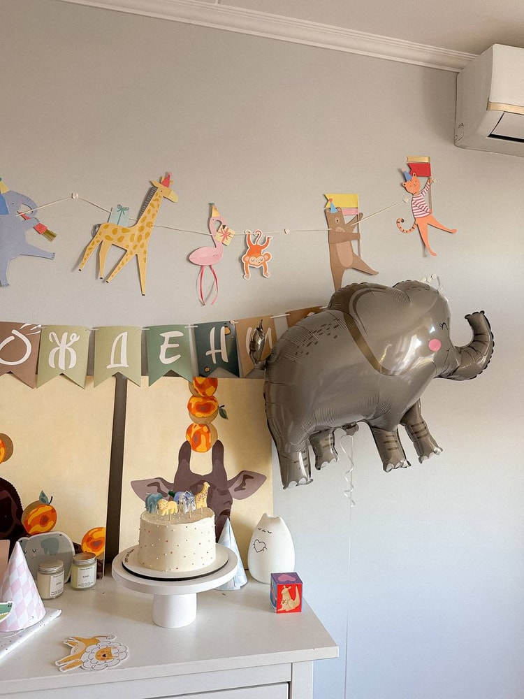 Украшения я подобрала в честь своей принцессы джунглей в стиле сафари. Я очень старалась, чтобы все сочеталось красиво, потому что сафари - это яркая тема со всеми зебрами и леопардами. И я хотела, чтобы не было перебора с животными или красками. Все фирмы писала у себя в телеграм-канале In my dekret era.