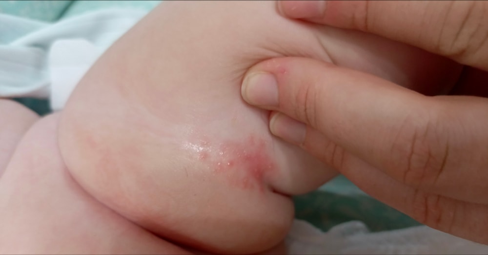 Попробуйте опять судокремом, только очень тонким слоем, сперва на руке у себя разотрите и вот на пальцах что останется, аккуратно нанесите ребёнку