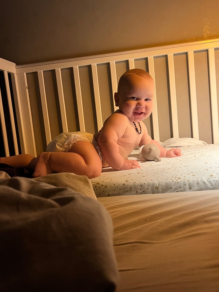 Уже и на ножки с опорой вставать начал, попу отклячивая, но пока только разово… рано что-то