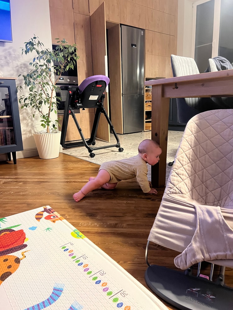 в один месяц мужчина начал прикорм (да, сам, отжал у меня банан в 5.5 месяца и покусал), сел и полноценно пополз. Точнее, сначала пополз, потом сел.