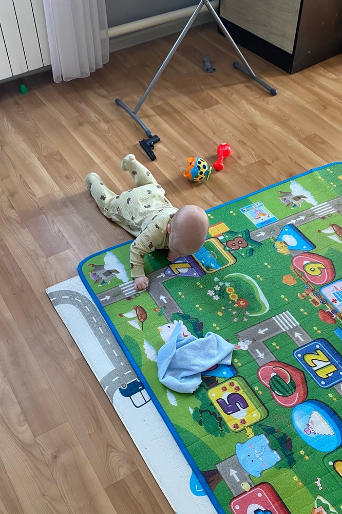 Специально кладу Тимку посередине ковриков, ну тут отошла значит на несколько минут😄 Пока только задом, но все впереди 💪🏻