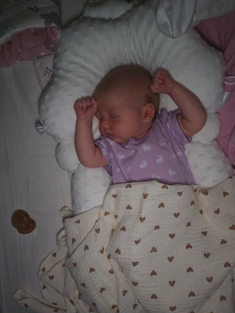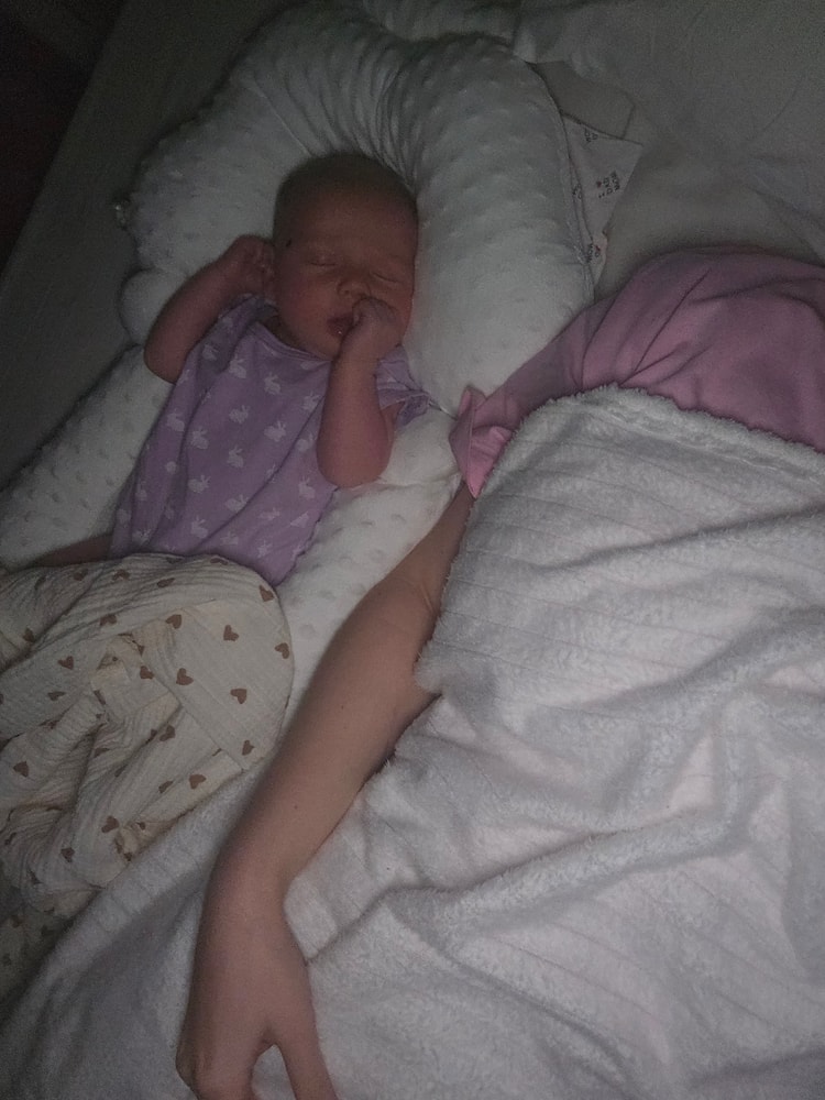 Моя дочь хорошо спит в этом позиционере, и я часто кладу её в кровать на совместный сон. Раньше я сворачивала валики из простыней и подкладывала их между нами.