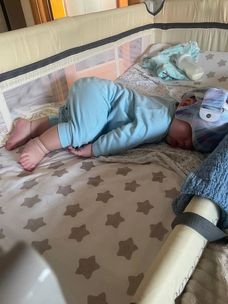 А ещё наконец-то стал во сне переворачиваться с живота на бок. Раньше приходилось мне это делать, когда у него не получалось и он орал. Примерно каждые полчаса - час. Сейчас крутится сам. Иногда даже не просыпается. На спине почти не спит.