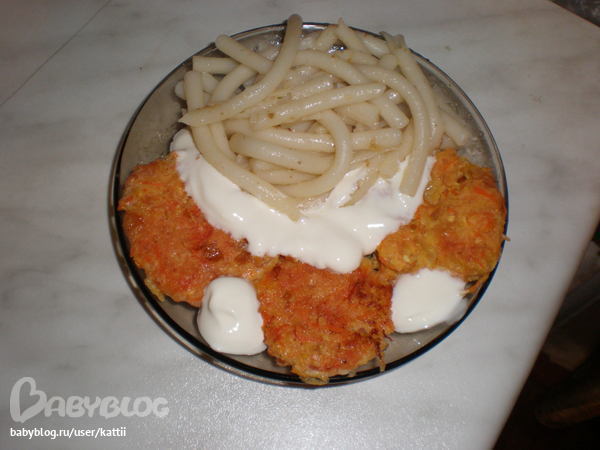 А у нас сегоднявот такие вот овощные паровые котлетки с макаронами и сметаной ел мой сыночка на ужин,получились нежненькие приятненькие на вкус и сочные