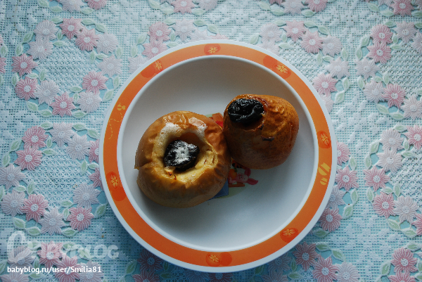 Ням Ням, вот и я такое же готовлю своему только без меда, и серединку с косточками вышкребаю туда чернослив, водички чуток и яблоско вилочкой протыкаю!!!