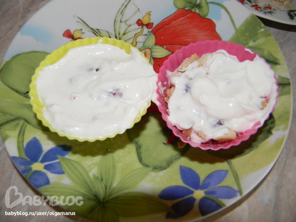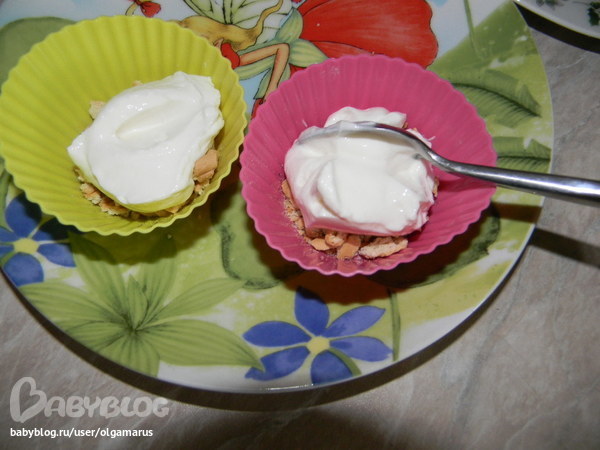 Понадобится печенье измельченное я брала хайнц (оно хорошо крышится), ягоды или фрукты, творог.
