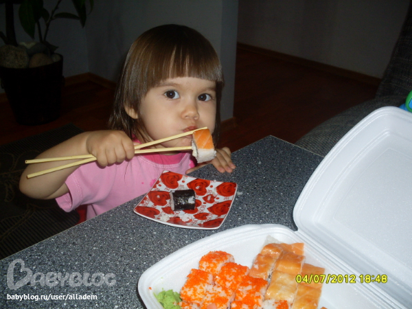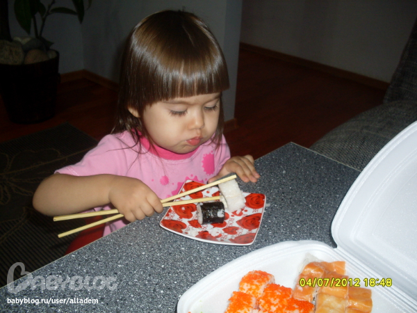 а мы давали сыну пару раз, только без рыбы, самые обычные с огурцом и перцем. а так он просто обожает ламинарии, прям трясет когда видит(раньше сама готовила)
