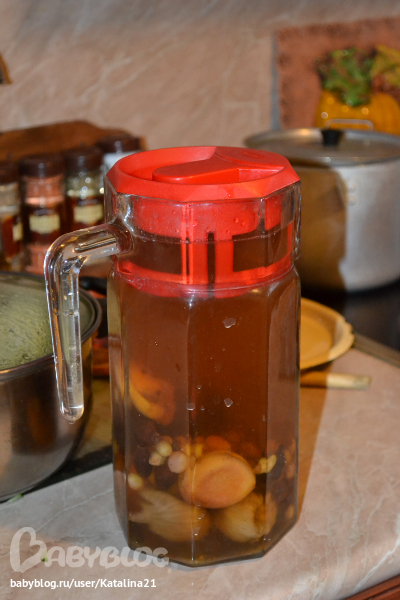 Кстати ты на ночь его делаешь или как?он потом весь день на столе стоит?сегодня заварила в литровом кувшинчике-кстати по виду точно такой же)а у тебя он на два литра?