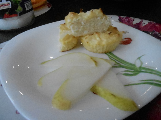 Творог протираем через сито,добавляем рис, яйцо. Вымешиваем. Натираем на терке грушу. Добавляем к творогу и перемешиваем. Запекаем в духовке при 180 гр. 20 мин.__________________