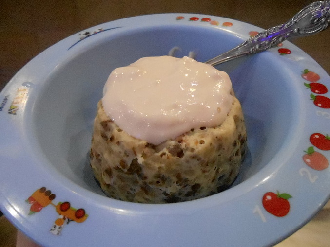 Варим гречку. Творог смешиваем с тертой грушей, яйцом, отварной гречей. Раскладываем в формочки.