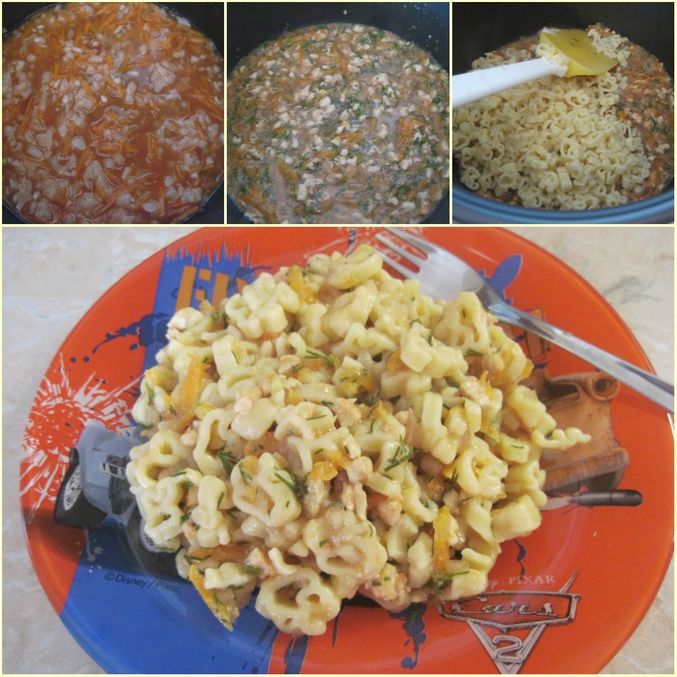 интересно, а если макароны (какие-нить мелкие) кинуть прям сразу в сыром виде и водички побольше добавить... ))