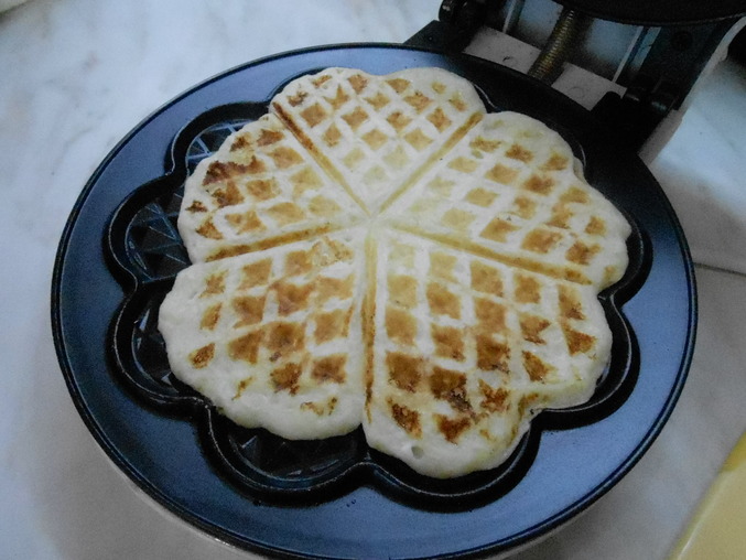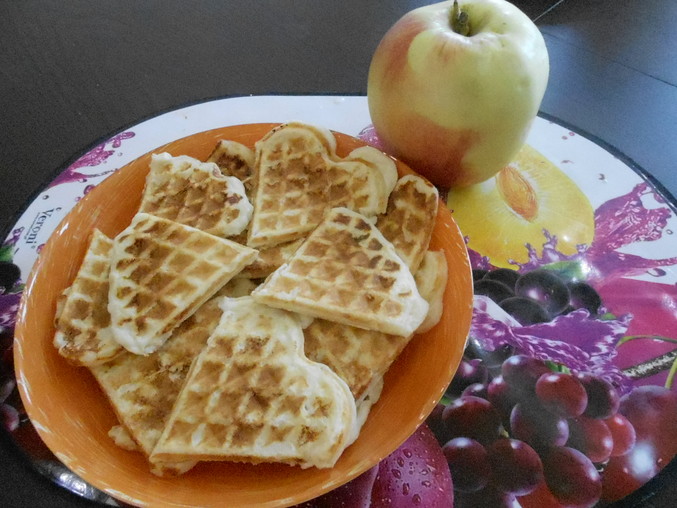 мука-1 ст.л. Все смешать. выпекать в вафельнице БЕЗ КАПЛИ МАСЛА по 3 мин.