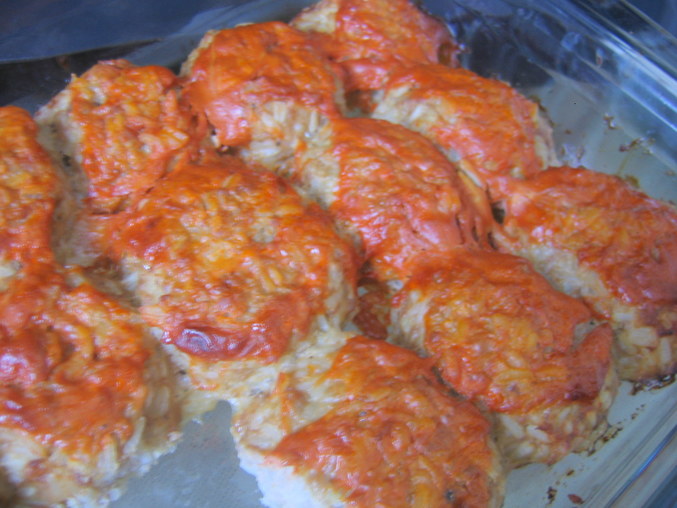 Ингредиенты: фарш из любого мяса, рис, сметана, томатная паста, муки или манной крупы, лук, яйцо. Я покупаю готовый фарш чаще всего, добавляю в него лук (кладу много, вкусно!),яйцо. Можно в фарш добавить прокрученный через мясорубку белый хлеб, предварительно замоченный в воде или молоке. Фарш готов. Рис варю. Смешиваю рис с фаршем, соль, немного перца, добавляю немного сметаны с томатной пастой, манки или муки. Формируем ёжики, укладываем в смазанный подсолнечным маслом противень. Ежики смазываем отсавшейся сметаной с томатной пастой, накрываем фольгой. Запекаем 20 минут, убираем фольгу, продолжаем запекать до готовности (примерно еще минут 20). Готовых ежей посыпаем рубленым зеленым луком)