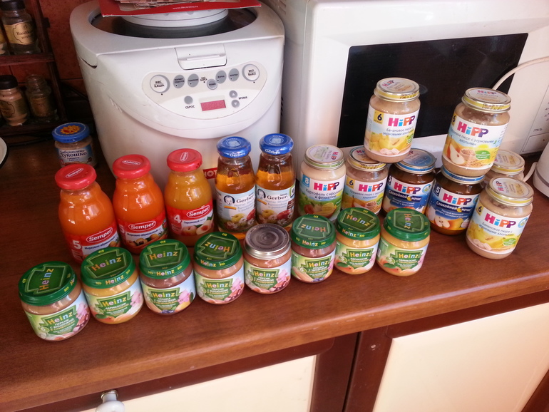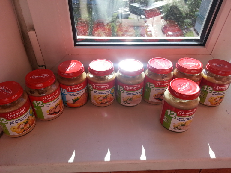 Мы едим одно из самых дорогих баночных питаний - Samper и Gerber + кашки перед сном Hipp (вкуснючие!). Кое-что Хайнц.