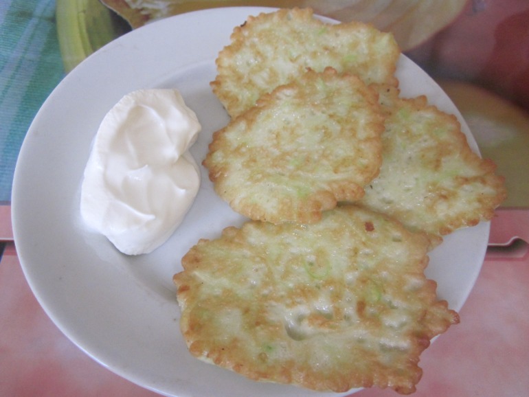 Сегодня готовила на всех блинчики из кабачка со сметанкой на завтрак)