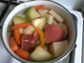 кабачок картошка мини морковка телятинка не много лучка и сл масла для колорийности..