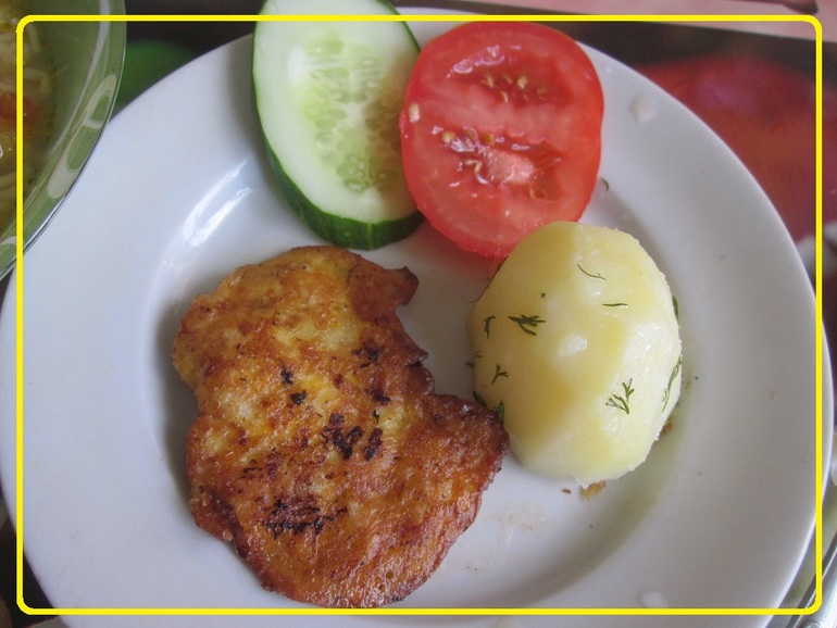 Нужно: куриная грудка 1 шт, лук 3 мелкие головки, морковь 1/2 шт, сметана 150гр, соль, 2 яйца.