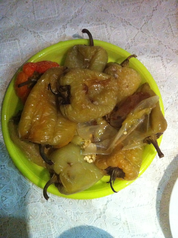 Удивительно, но под шкуркой перчики очень нежные, без резкого вкуса и даже немного сладенькие.