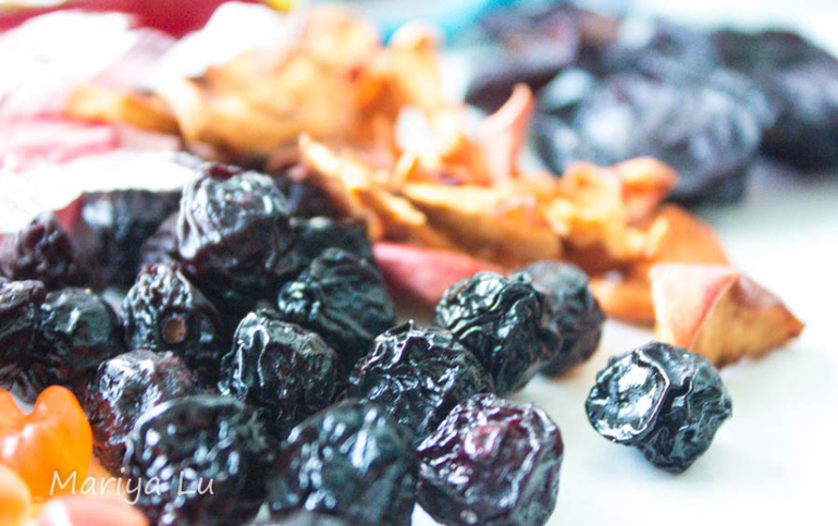 Еще одно любимое- сухофрукты. Этим летом я тоже постаралась немного заготовить,а сливу сушу до сих пор. Разделяю пополам и сушу в духовке, к сожалению целыми(для компота) не получается,лопаются и вытекает сок. Хотя вишня с косточками получилась отлично. Если захотите посушить,то выбирайте сорт "Венгерка",он лучше всего подходит.
