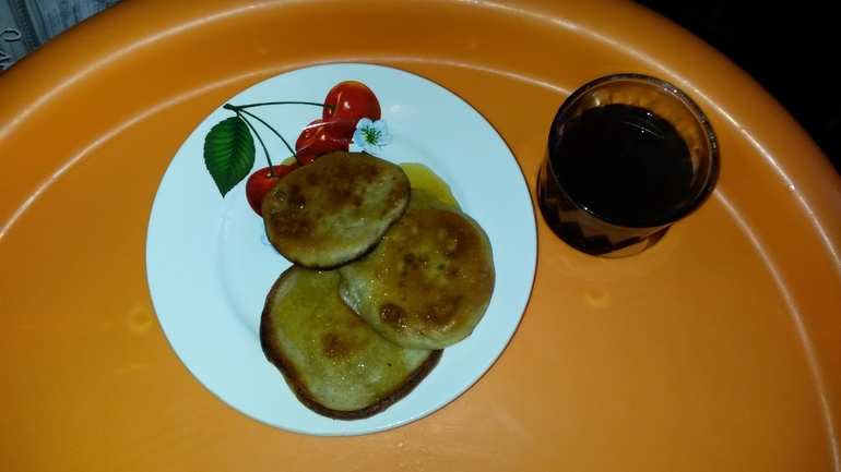 2.Полдник-банановые оладьи с медом и компот(клубника и сушенные яблоки)