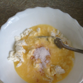 3. Теперь в творог добавляем яичную массу и помешивая добавляем муку.