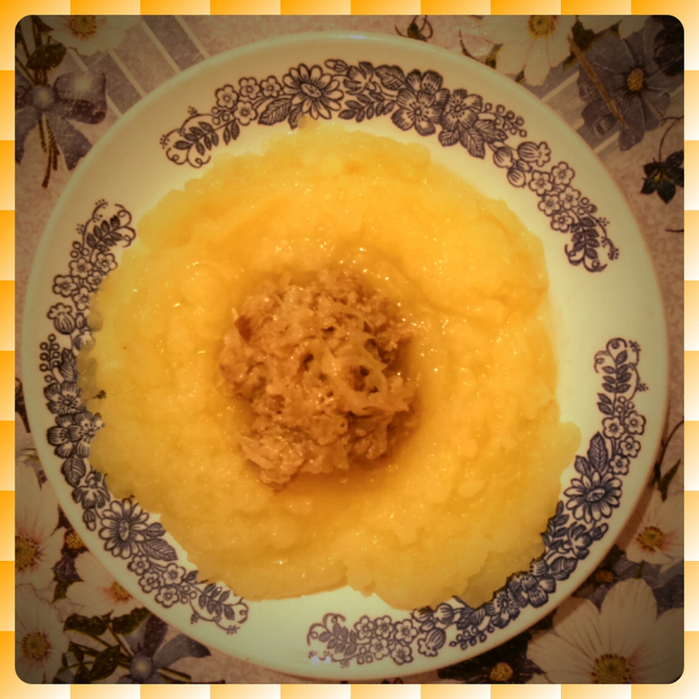 Обед - картофельное пюре на воде, мясная котлета тушеная