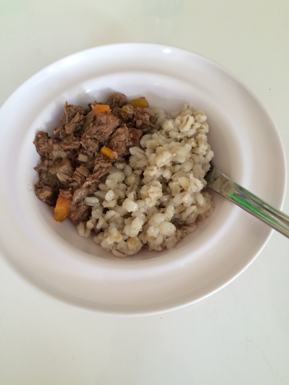 В обед мы едим, как правило, что-то мясное с гарниром (белый рис, бурый рис, греча, чечевица и пр.)