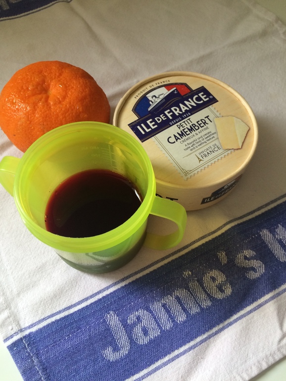 Также в обед Полина съедает кусочек сыра (любой сыр с нежным нейтральным вкусом, ест большой ассортимент. Не любит соленые сорта, типа брынзы. Я и рада). И завершается обед фруктом, сегодня это мандарин (груша, яблоко, апельсин и пр.). И пьет немного совсем морса/компота - 20-50 мл. Больше не хочет.