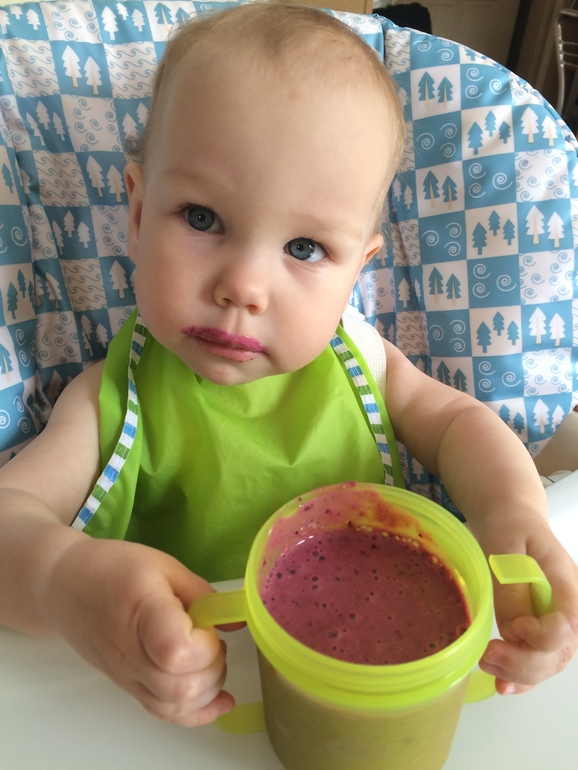 После обеденного сна - полдник. Здесь у нас чаще всего творог, банан или мороженое из него. Но сегодня это смузи. Смузи мы тоже часто пьем на полдник. Они отлично насыщают до самого ужина.