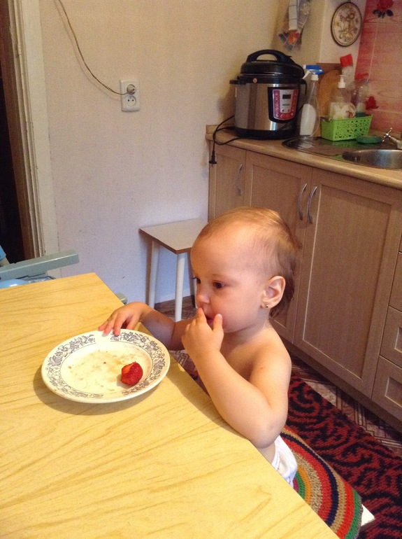 Фрукты и ягодыВпервые попробовала дать Софийке клубнику в 1.9)))т.к мы аллергетики дала 3шт буду смотреть на реакцию.Ребенок слопал её за обе щеки и ещё бы побольше если мама бы дала)))Ну и мой чумазик)))