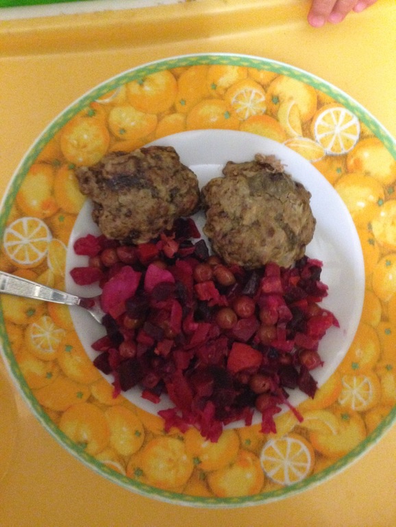 Котлеты из говядины и венегрет (без соленых огурцов);