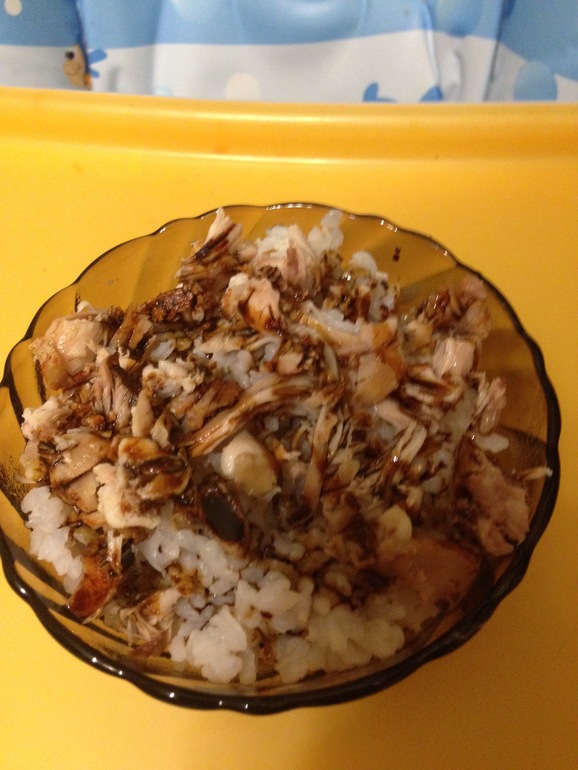 Индюшка тушеная с луком, морковкой и кабачком. Смешала рагу с рисом;
