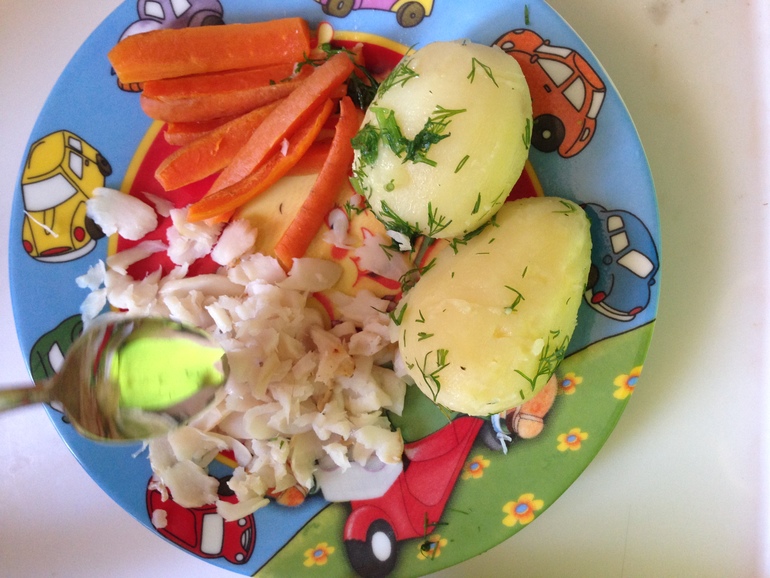 Картофель с рыбой и морковкой (запекала все в одном рукаве);