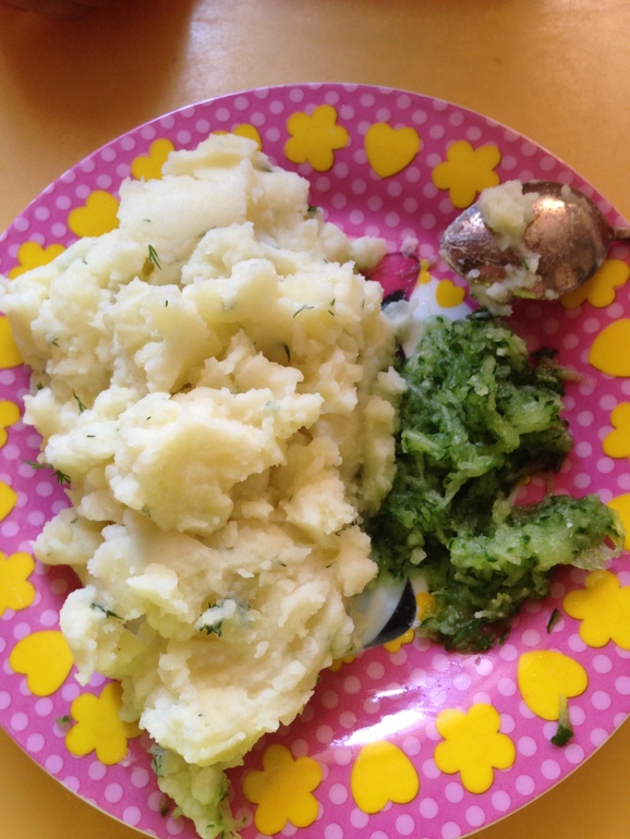 Картофельное пюре (молоко+слив масло) с тертым огурцом;